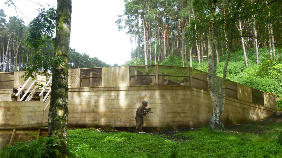 In this scenario, your team must transport an ammo box across the bridge into the hut to win. The box requires two people to carry it, so team work is vital. Do you get your best sharpshooters to pick off the opponents on the bridge before your advance or hit them head on? Whatever you decide expect an intense game on this field.